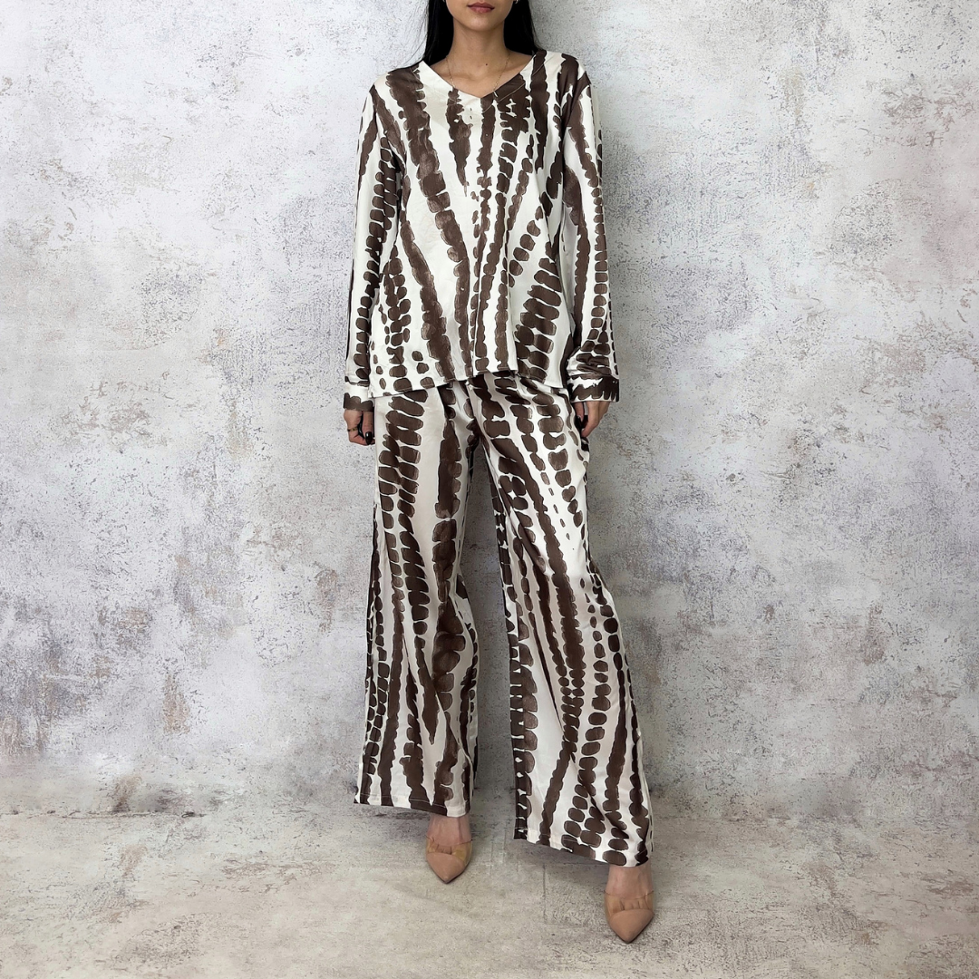 Conjunto tie dye satinado cafe