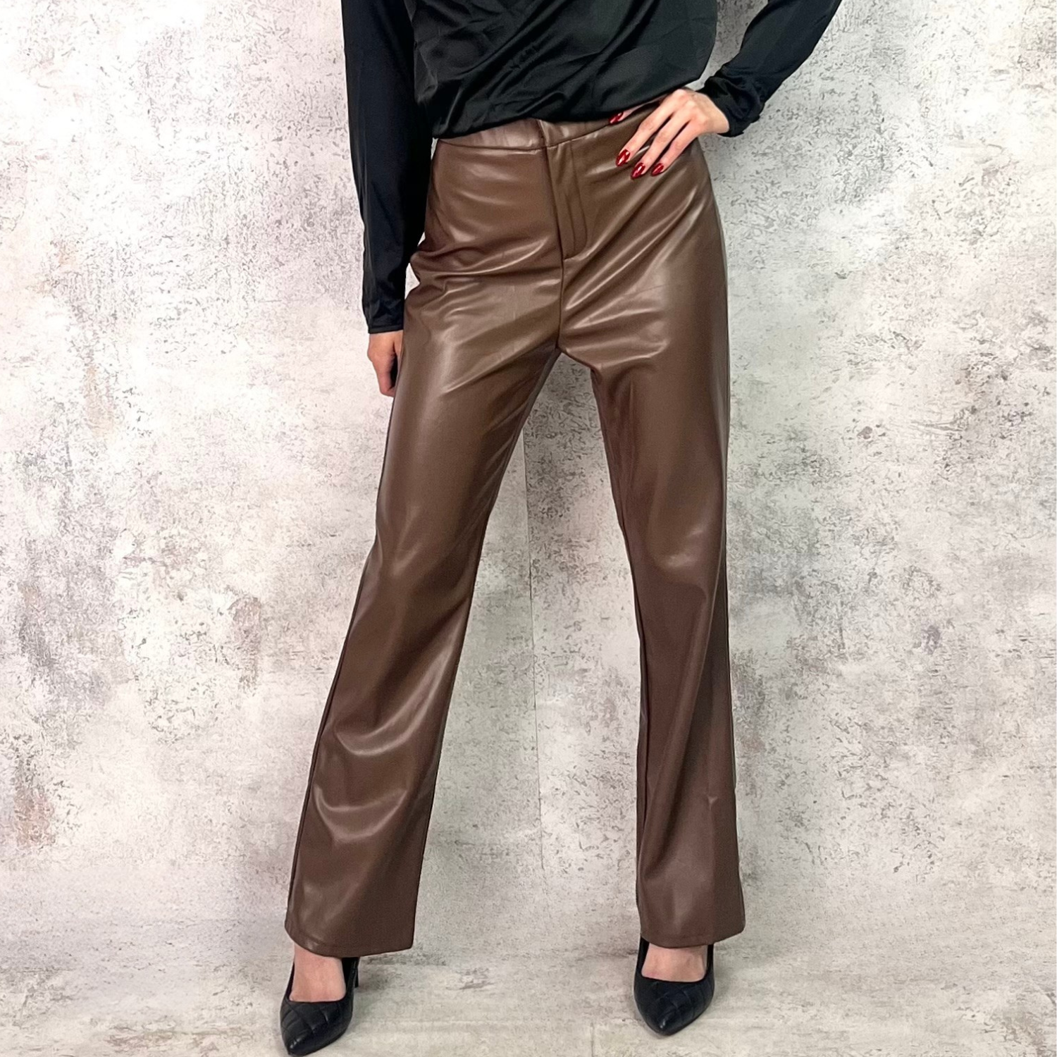 Pantalón efecto piel color moka