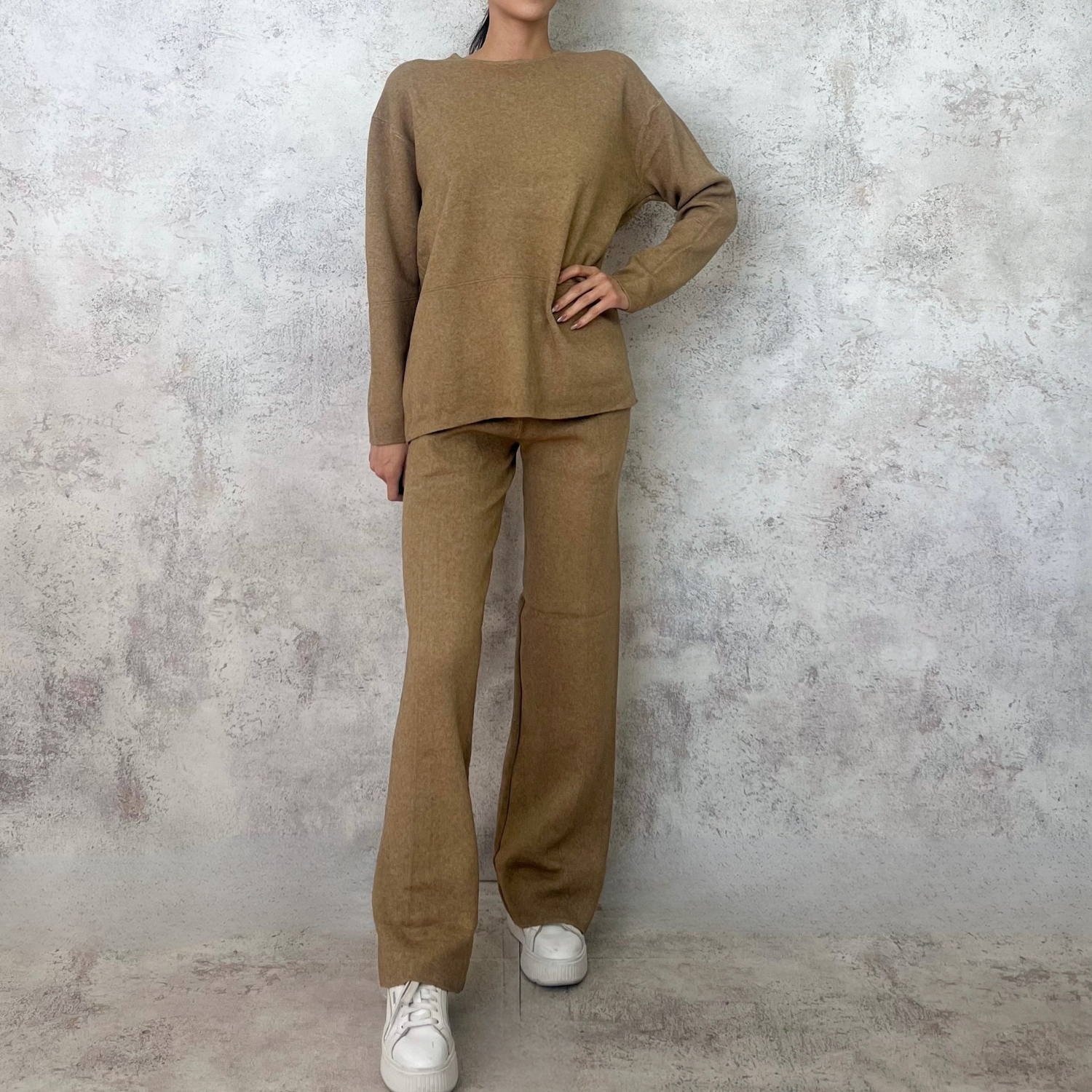 Set de pantalón y cárdigan, punto tejido fino. Bolsas en pantalon.