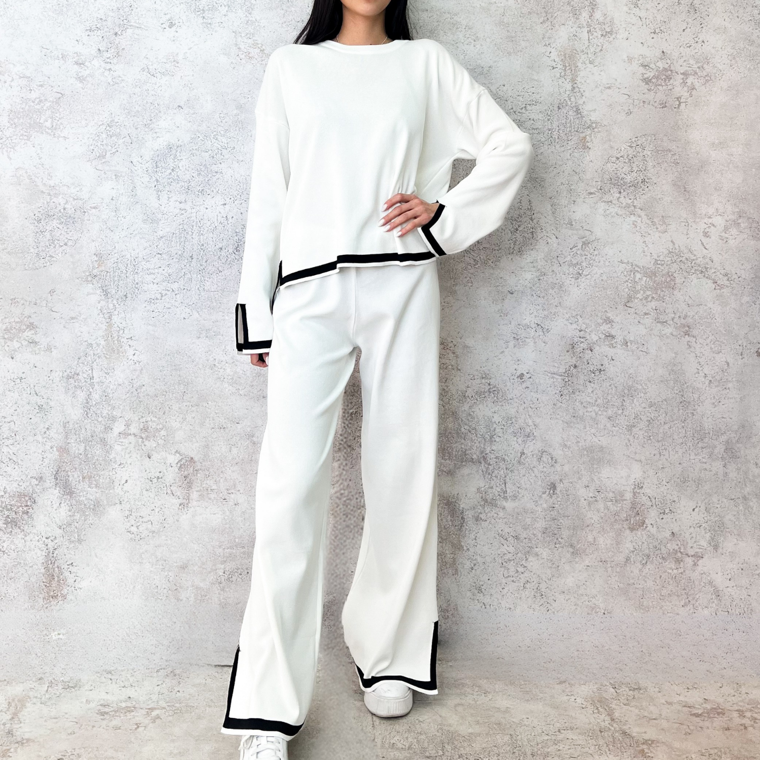 Set tejido blanco con raya negra