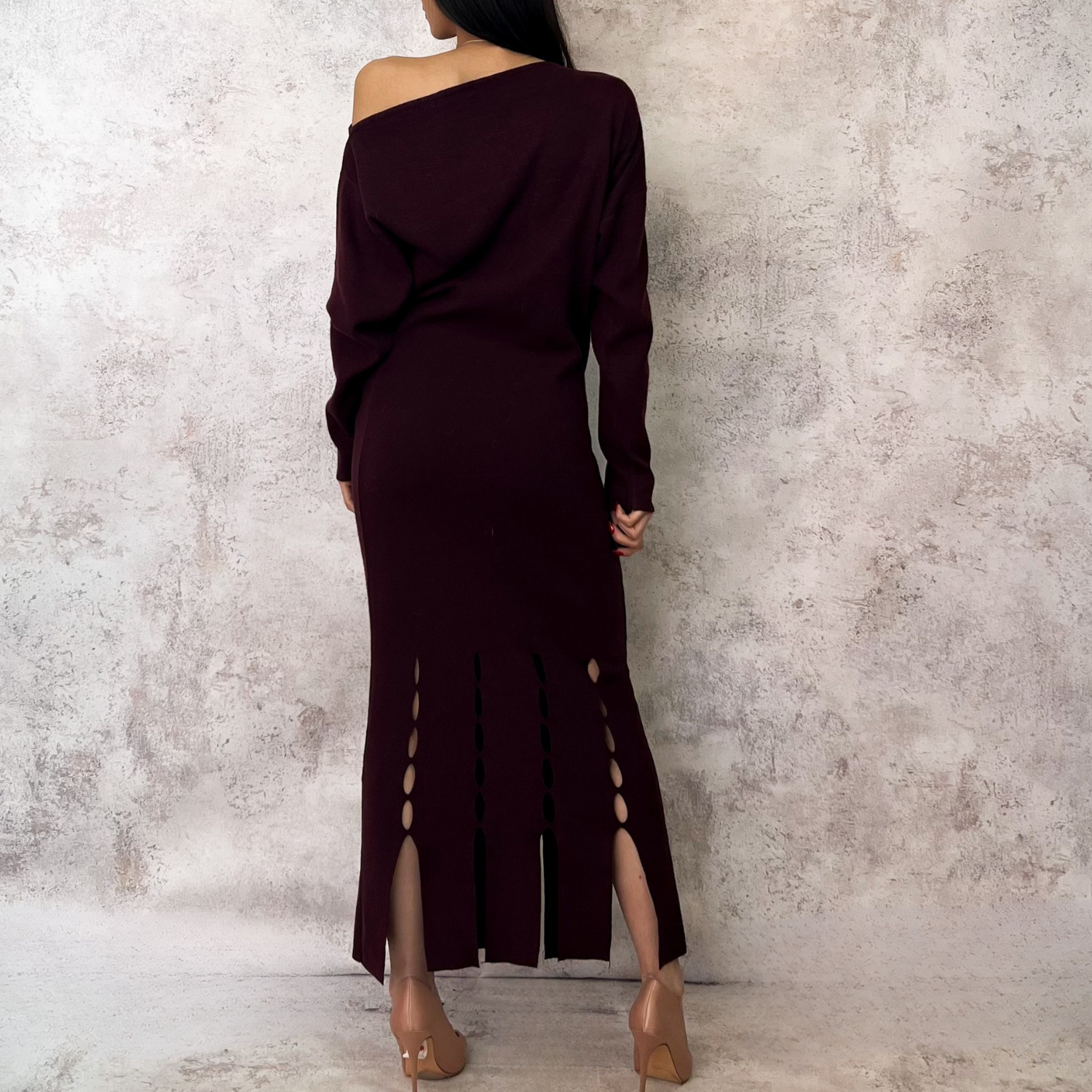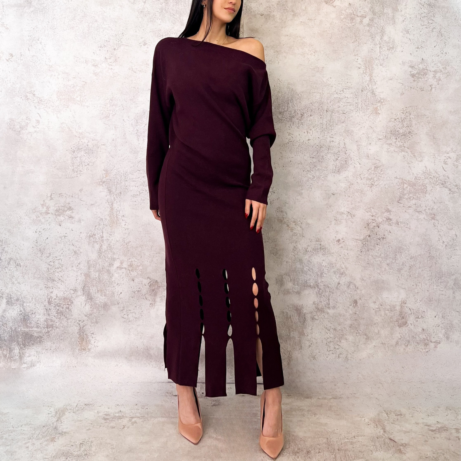 Vestido burgundy tejido cortadillos